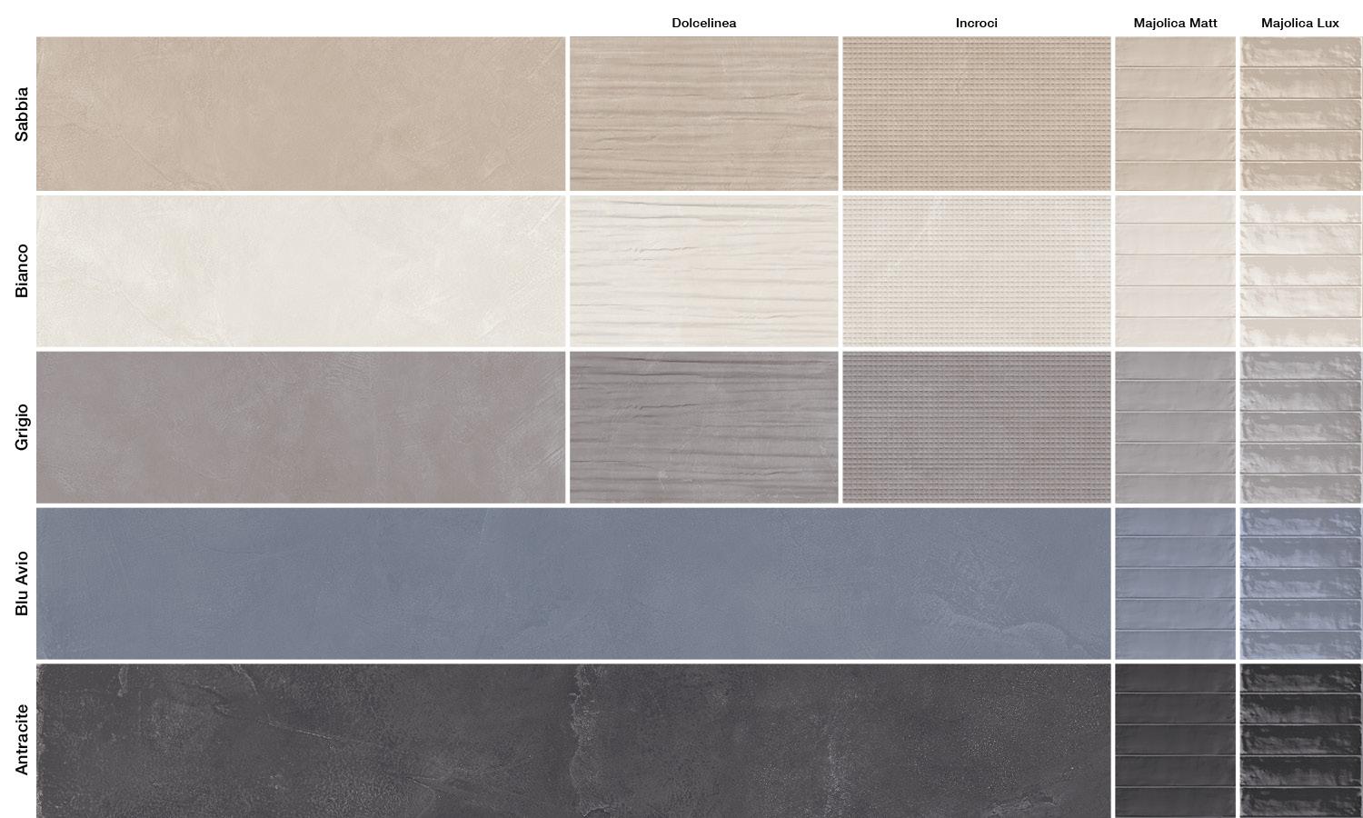 La combinazione di materiali diversi, ma totalmente coordinabili, genera una serie unica e contemporanea: tre resine dalle differenti possibilità di applicazioni, un brick e un’ampia gamma di decori.
