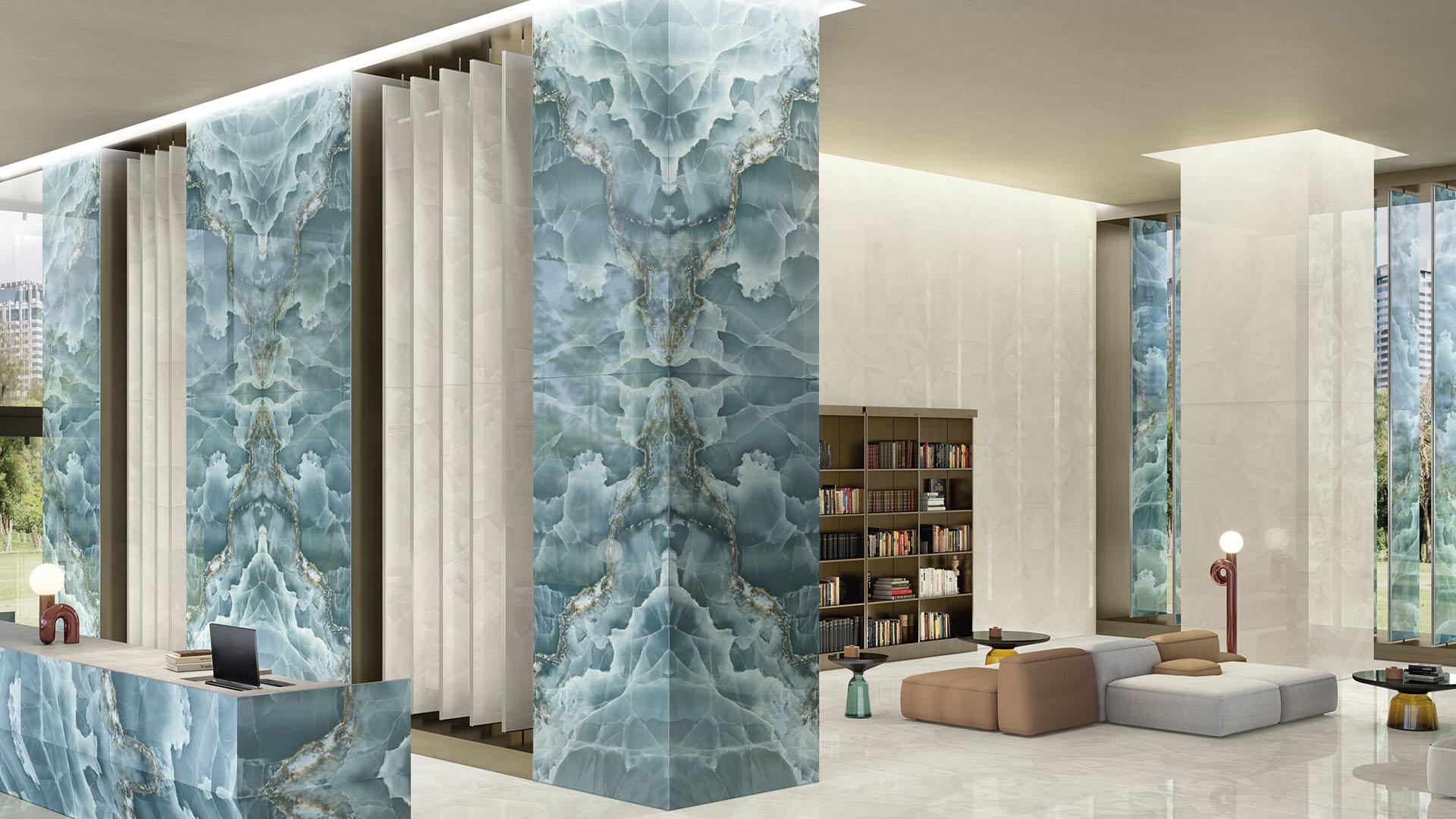 Le grandi lastre ceramiche effetto marmo o pietra sono gli strumenti più utilizzati per realizzare questa tendenza di interior design perché consentono di creare vere e proprie opere artistiche.