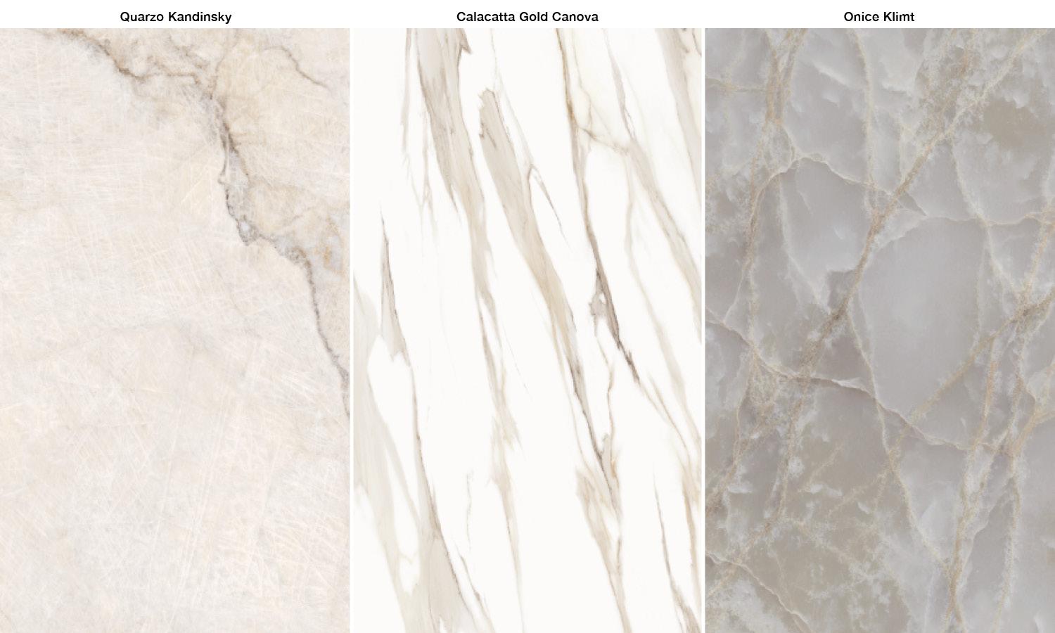 Il progetto nasce dall’idea di rileggere in chiave contemporanea un materiale dal fascino intramontabile come il marmo, grazie a una scelta non convenzionale di formati, finiture ed elementi decorativi. Tre nuove proposte di marmi naturali e lappati che trovano la loro massima espressione nei formati delle grandi lastre, dove le venature diventano assolute protagoniste. Gli andamenti fluidi, le tonalità cromatiche e le sfumature in cadenza delle diverse vene rendono le Tele di marmo Reloaded vere e proprie opere d’arte.