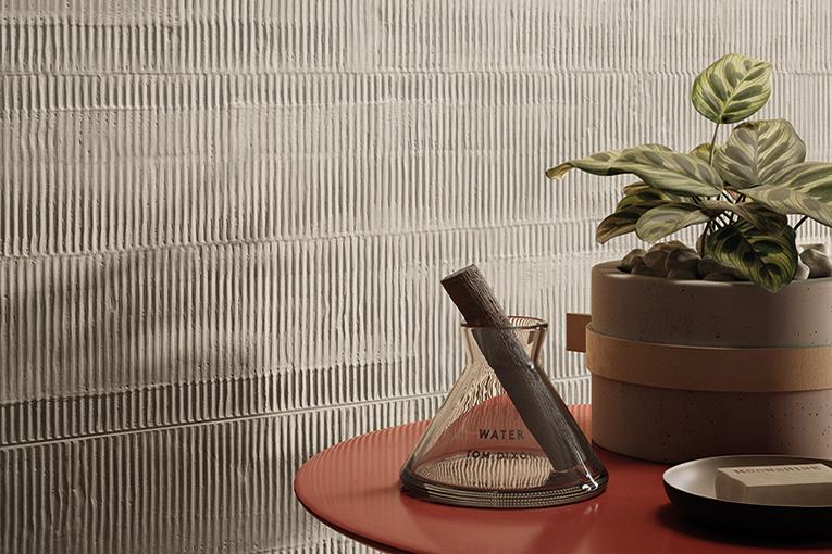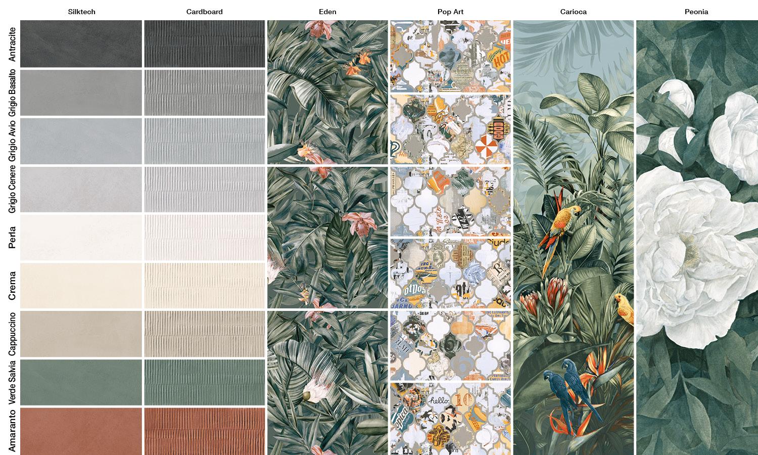 Materia che dà corpo a una nuance uniche e irripetibili, compatte e insieme sfaccettate, resina significa anche superfici dalla plasticità ondulata e sinuosa, frutto di una gestualità sapiente e sempre nuova. È dunque un insieme complesso di suggestioni cromatiche e materiche quello che dà vita a Pigmento: un progetto ultra-realistico e tecnicamente ineccepibile articolato in 9 colori disponibili sia in gres porcellanato a spessore tradizionale che in grandi lastre sottili. Una collezione che bilancia alla perfezione minimalismo e decorativismo, tra texture dalla marcata tridimensionalità e lastre effetto carta da parati. Qui, la matrice artistica dei soggetti è esaltata dalla forzatura delle proporzioni, fino a un fuori scala che – ancora una volta – fa emergere la vitalità del colore e l’espressività della materia.