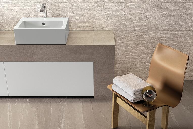 Gres Porcellanato Ergon Stone Talk Pietra Bagno Taupe Minimal,sand Rullata,taupe Martellata Immagine Gallery | Emilceramica