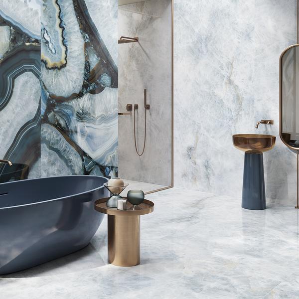 Lastre ceramiche nei formati 160x320 cm, spessore 6,5mm rettificato, e 162x324, spessore 12mm non rettificato, per costruire oggetti come top e backsplash per cucine e bagni, piani lavoro, tavoli, ante, soluzioni di rivestimento a pavimento e a parete senza soluzione di continuità, e altri elementi, anche outdoor, con possibilità di dettaglio, trasversalità e personalizzazione finora impensabili.