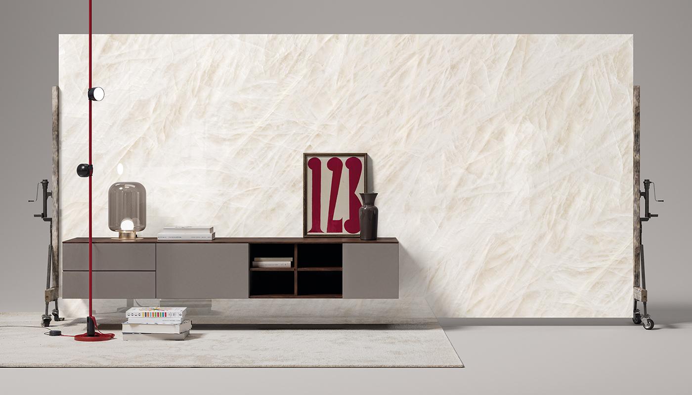 Lastre ceramiche nei formati 160x320 cm, spessore 6,5mm rettificato, e 162x324, spessore 12mm non rettificato, per costruire oggetti come top e backsplash per cucine e bagni, piani lavoro, tavoli, ante, soluzioni di rivestimento a pavimento e a parete senza soluzione di continuità, e altri elementi, anche outdoor, con possibilità di dettaglio, trasversalità e personalizzazione finora impensabili.