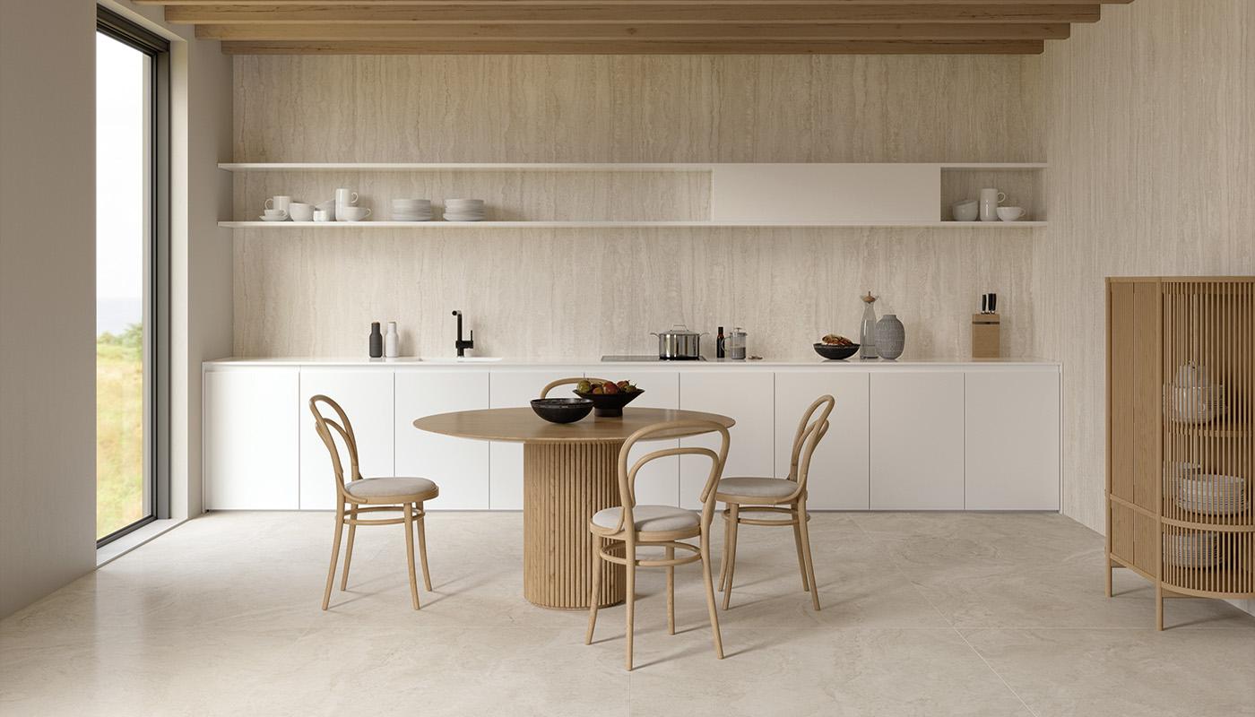 Una serie suggestiva e versatile, realizzata in quattro eleganti nuance declinate in altrettante quattro finiture, che reinterpreta il travertino in una chiave inedita e attuale.