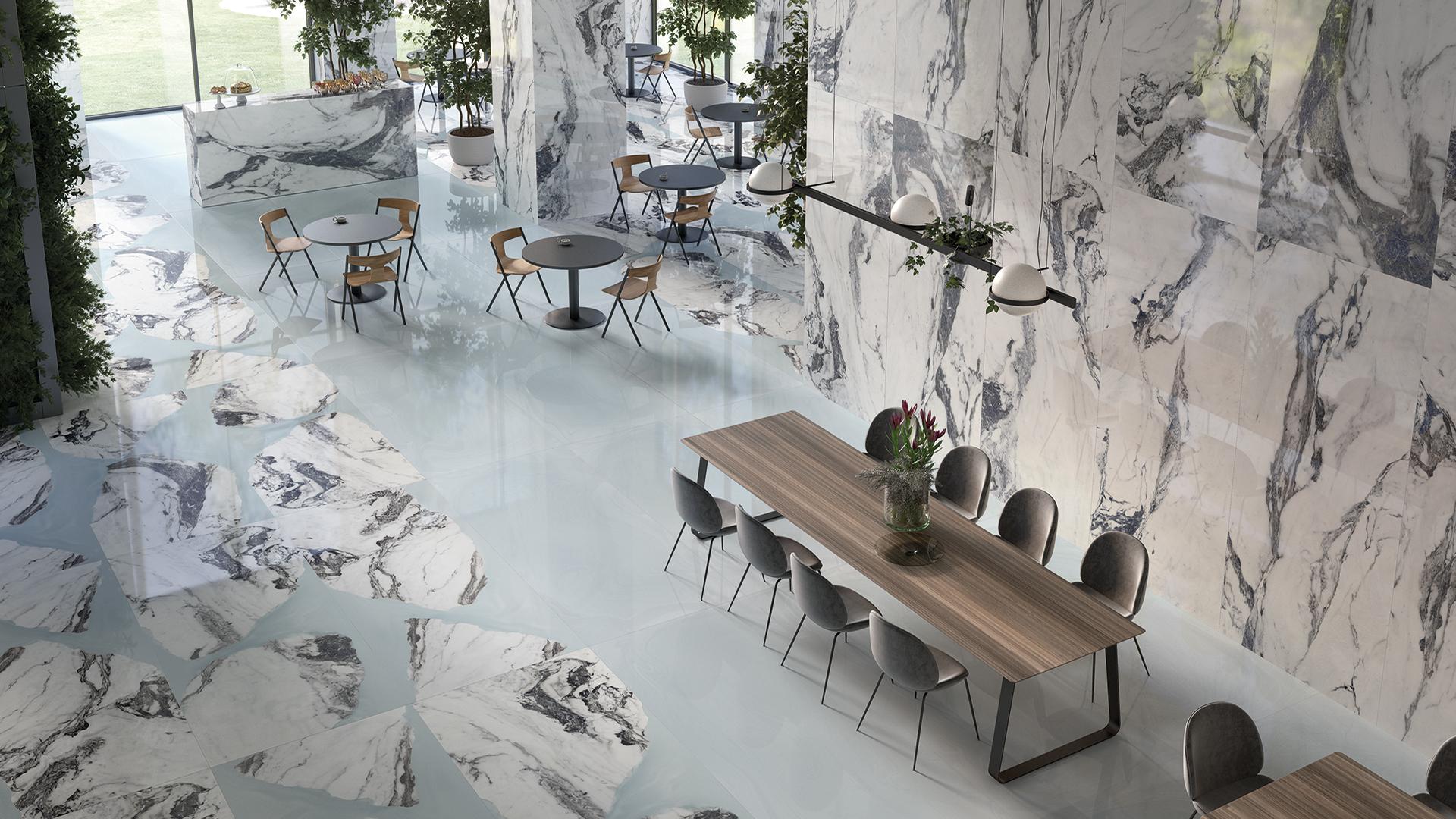 Tra i pro del gres porcellanato lappato vediamo sicuramente la grande lucidità e l’aspetto elegante che questo materiale è capace di donare ad ogni ambiente. Come si può vedere in alcune delle nostre ultime collezioni, come Tele di Marmo Precious, il suo essere fedele al marmo riesce ad esaltare i colori e i dettagli dell’arredamento circostante, facendo emergere un’estetica di lusso, brillante e raffinata.