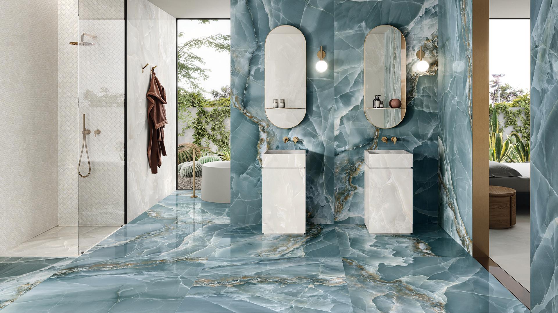 Tele di Marmo Onix by Emilceramica è la collezione perfetta per mettere in scena tutta l’eleganza e la teatralità del marmo, in piastrelle per la doccia nei grandi formati (fino a 120 x 278 cm). I dettagli preziosi dell’onice – la lucentezza sfarzosa, la seduzione delle venature – diventano elementi artistici su tele di marmo, una piastrella che diventa opera d’arte, in cinque colorazioni vibranti e scenografiche, da ammirare.