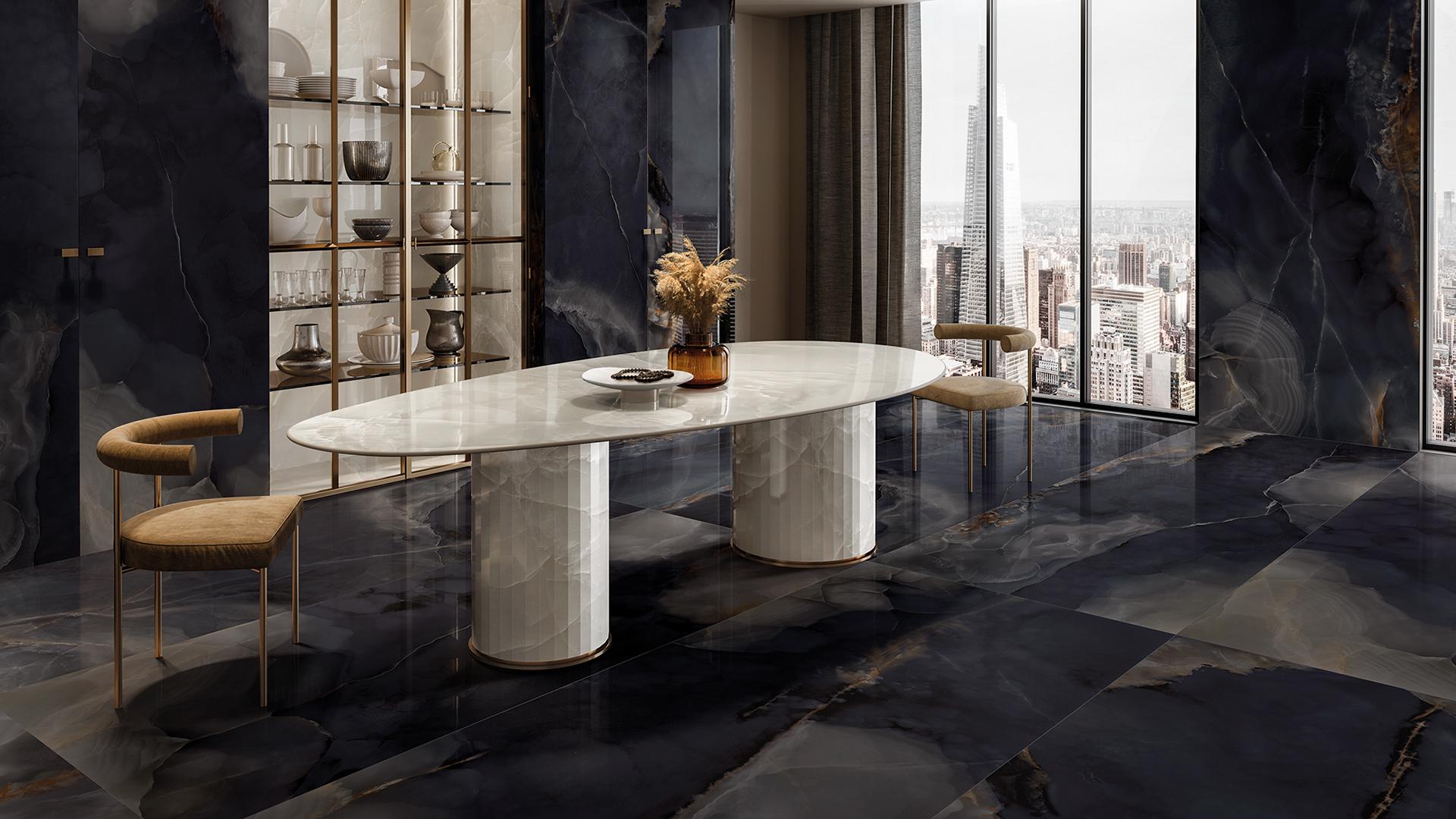 Per un pavimento effetto marmo senza fughe, Tele di Marmo Onyx by Emilceramica offre una palette progettuale teatrale e seducente. Disponibile in cinque scenografiche varianti cromatiche, la bellezza opalescente dell’onice fa da ispirazione alla collezione che reinterpreta la sontuosità del marmo in chiave contemporanea. La tridimensionalità della texture, la cromia delle venature, la luminosità delle stratificazioni sono i dettagli che elevano la piastrella alle dimensioni di un capolavoro.