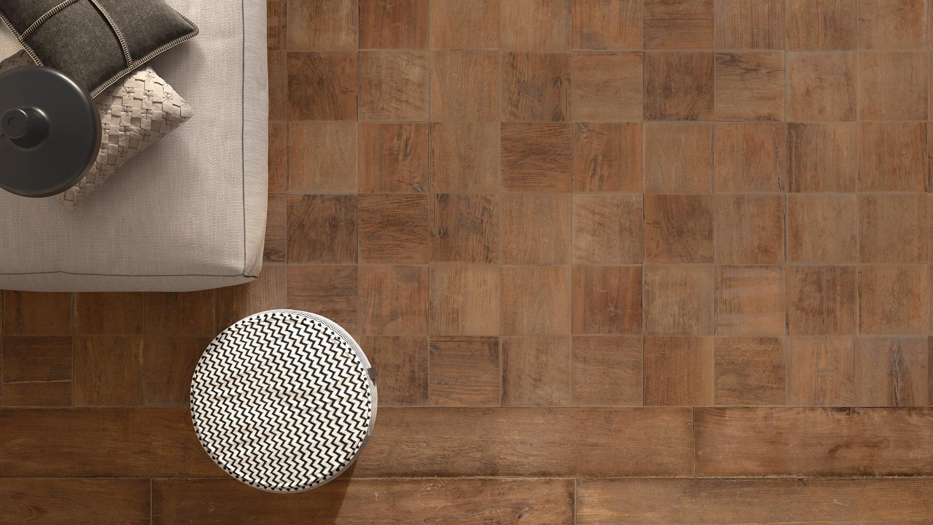 Emilgroup introduce una linea di piastrelle con variazioni di legni di recupero e un Tangram ideale per conferire movimento e personalità.