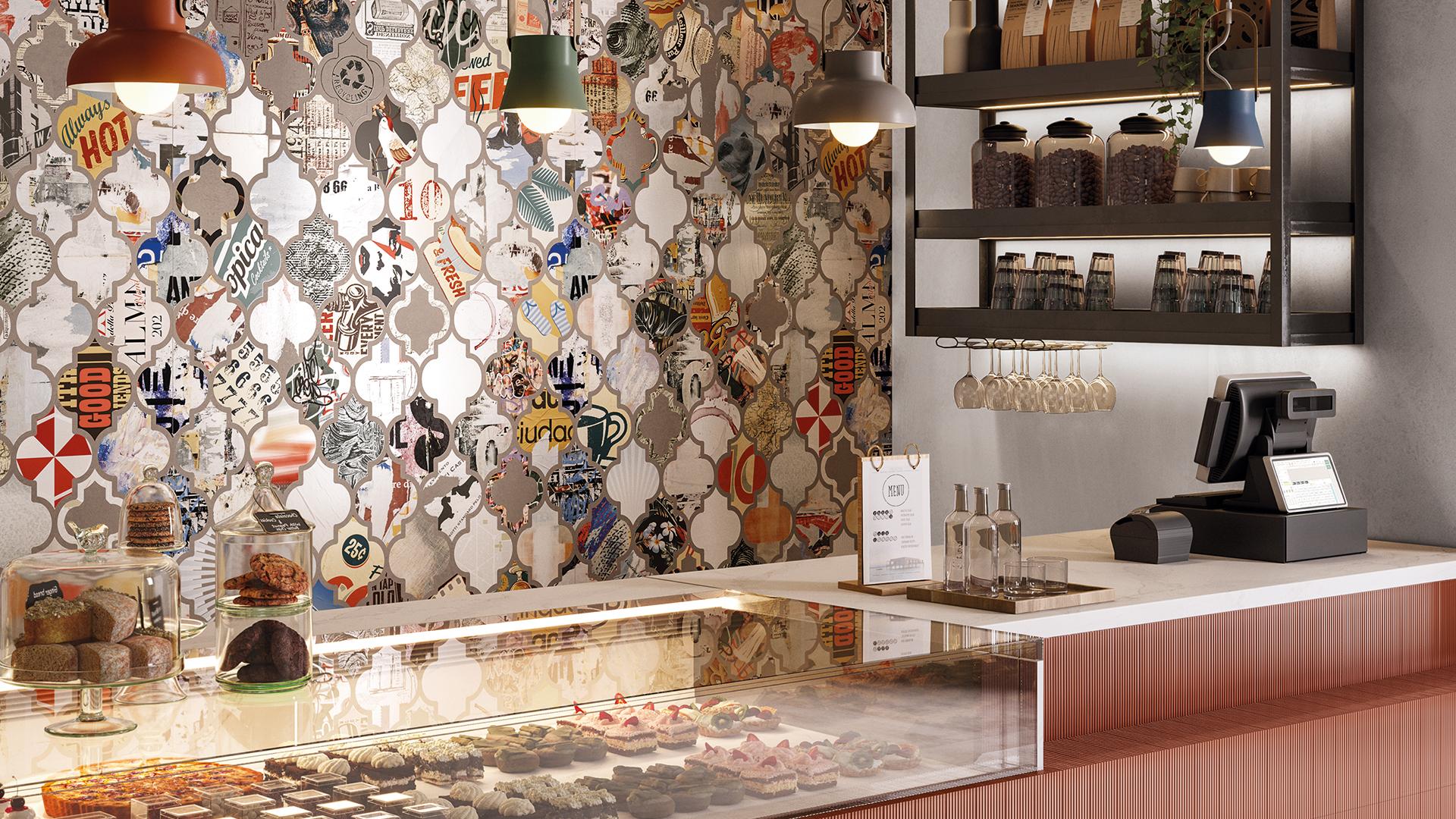 Con “selfie wall” si possono intendere diversi spazi nel negozio. Molti trasformano una parete del proprio locale in un punto dove inserire il proprio logo e un proprio simbolo caratteristico – delle ali da angelo, una corona, una mascotte – così da invogliare i clienti a farsi una foto da condividere sui social. Ma non bisogna per forza dedicare un’intera parete, con il rischio di rompere la continuità dell’ambiente. Una scelta che si è lentamente affermata è quella di mantenere la personalità del resto del locale. In questo modo la nostra parete instagrammabile diventa il fulcro di tutto il racconto del negozio. Un pratico esempio di queste possibilità è dato da Pigmento by Ergon, una collezione dai colori neutri e facilmente declinabili in qualsiasi spazio commerciale che però si permette improvvise suggestioni cromatiche perfette da applicare alle pareti: in questo modo nel nostro negozio potranno essere inserite grandi piastrelle alle pareti che richiamano i motivi della giungla o della natura più rigogliosa, in una forte prospettiva di un decorativismo che però non rinuncia al minimalismo dei colori neutri. Le lastre ispirate alla resina cementizia creano un complesso di nuances di nove tonalità disponibili per smisurate combinazioni di design. E con le fantasie Eden, Carioca, Peonia e Pop Art è possibile allestire uno spazio unico ed eccentrico. In questo modo si costruiscono luoghi instagrammabili senza però rischiare la rottura con l’armonia del locale.