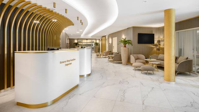 Medley by Ergon, con il suo carattere deciso e irriverente, si è rivelata la scelta ideale per questo ambizioso progetto, abbinandosi all’atmosfera glamour dell’hotel. Il pavimento è stato realizzato alternando i colori Grey, Dark Grey e Pink nella versione Rock, negli espressivi formati 60x60 e 60x120 cm. Il risultato è uno spazio estremamente contemporaneo, dinamico e giocoso, dove i clienti possono rilassarsi e socializzare, sorseggiando il loro drink preferito.