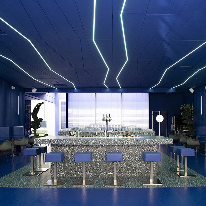Turbo Milano è un mixology bar contemporaneo situato nel cuore di Milano, uno spazio del tutto originale, innovativo, sostenibile e…blu! Il progetto, curato dall’Architetto Davide Gernone, nasce dalla voglia di riplasmare il modo di fare ristorazione e di viverla, inquadrandola in un ambiente che ne rivede le prospettive. L’arredo ricercato con eleganti finiture di pregio fa da cornice ai commensali, i dettagli tecnologici ne completano l’atmosfera.